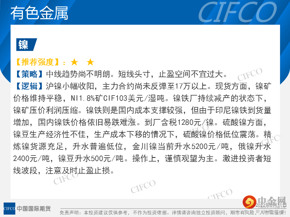 免责声明:客户不应视本报告为作出交易决策的惟一因素。本报告中所指的观点及服务可能不适合个别客户,不构成客户私人咨询建议。本公司未确保本报告充分考虑到个别客户特殊的投资目标、财务状况或需要。本公司建议客户应考虑本报告的任何意见或建议是否符合其特定状况,以及(若有必要)向取得期货交易咨询业务资格的经营机构或期货交易研究分析人员咨询。在任何情况下,本报告中的信息或所表述的意见并不构成对任何人的交易建议。在任何情况下,本公司不对任何人因使用本报告中的任何内容所引致的任何损失负任何责任。若本报告的接收人非本公司的客户,应在基于本报告作出任何交易决定或就本报告要求任何解释前向取得期货交易咨询业务资格的经营机构或期货交易研究分析人员咨询。