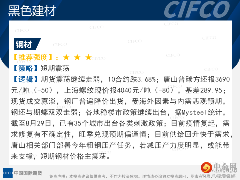 分析师承诺:本人(或研究团队)以勤勉的职业态度,独立、客观地出具本报告。本报告清晰准确地反映了本人(或研究团队)的研究观点。本人(或研究团队)严格遵守《中国国际期货股份有限公司廉洁从业规定》不存在利用期货交易咨询从事或变相从事期货委托理财活动,本人(或研究团队)不曾因,不因,也将不会因本报告中的具体推荐意见或观点而直接或间接接收到任何形式的报酬。