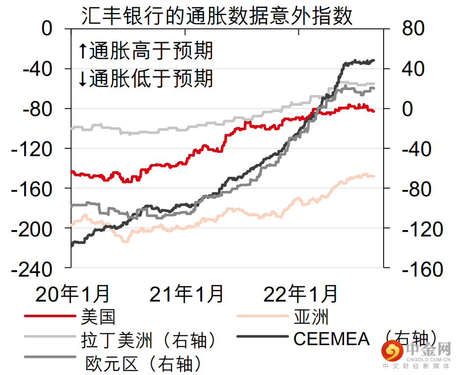 2.发达和新兴经济体通胀超预期上升的趋势都开始企稳