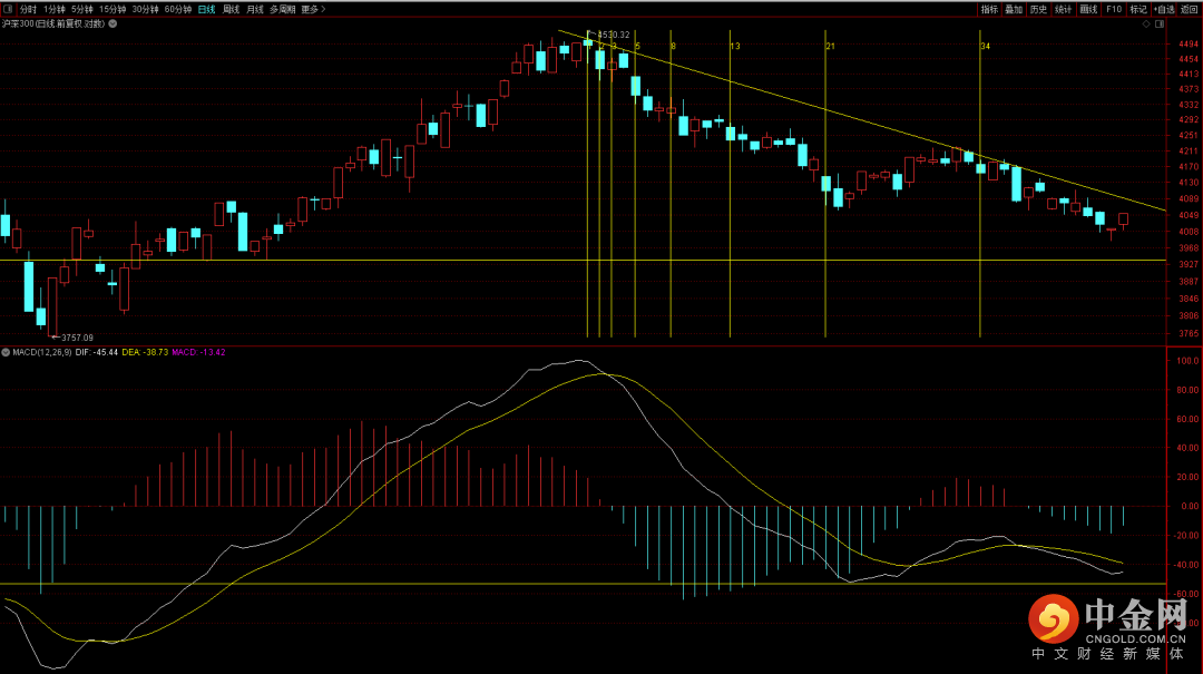 沪深300短期已经临近三十分钟的下降趋势压制,且已经出现三卖结构,后续如果出现扩张结构也大概率会有再次的回落,注意强压4100附近的压制。大概率会有再次的折返结构。