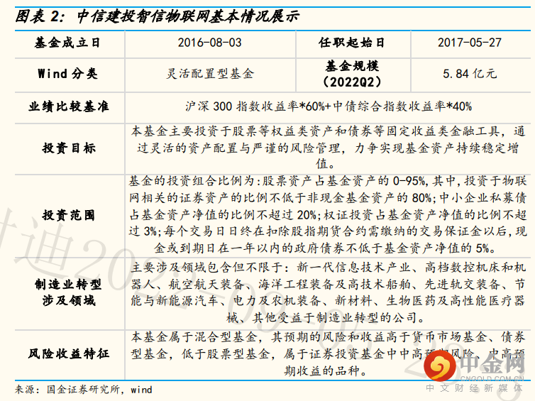 “中信建投智信物联网”为灵活配置型基金,契约规定其投资于股票的比例范围为 0%-95%,其中,投资于物联网相关的证券资产的比例不低于非现金基金资产的 80%。