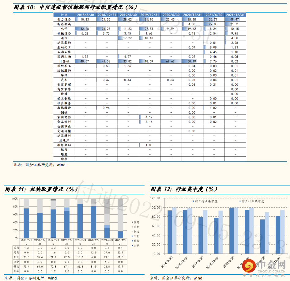 行业集中度方面,前三大行业集中度基本在 80%以上,2018 年以来前三大行业平均集中度为 86.79%;前五大行业集中度均在 90%以上,2018 年以来前五大行业平均集中度为 96.47%。截至 2021 年年报,本产品前三大行业集中度为 81.33%,前五大行业集中度为 95.28%,集中度相当高。周紫光表示集中度完全是研究结论的体现,不会对集中度进行人为设限。当经过深入仔细研究之后,对于某个行业板块有非常确定的研究结论时,会及时重仓持有,反之则持有较少较分散或无持仓。集中度反映的是基金经理对行业板块的确定度和自信度。
