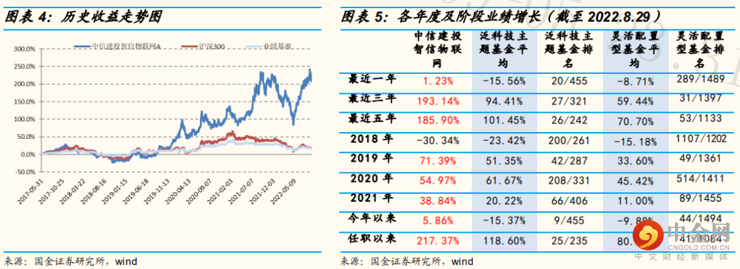 为更好分析基金经理周紫光的投资特点,本文选取当前在管基金中单独管理时间最长的“中信建投智信物联网”作为其代表产品,从收益风险、持仓偏好、操作特点等多角度进行详细分析。