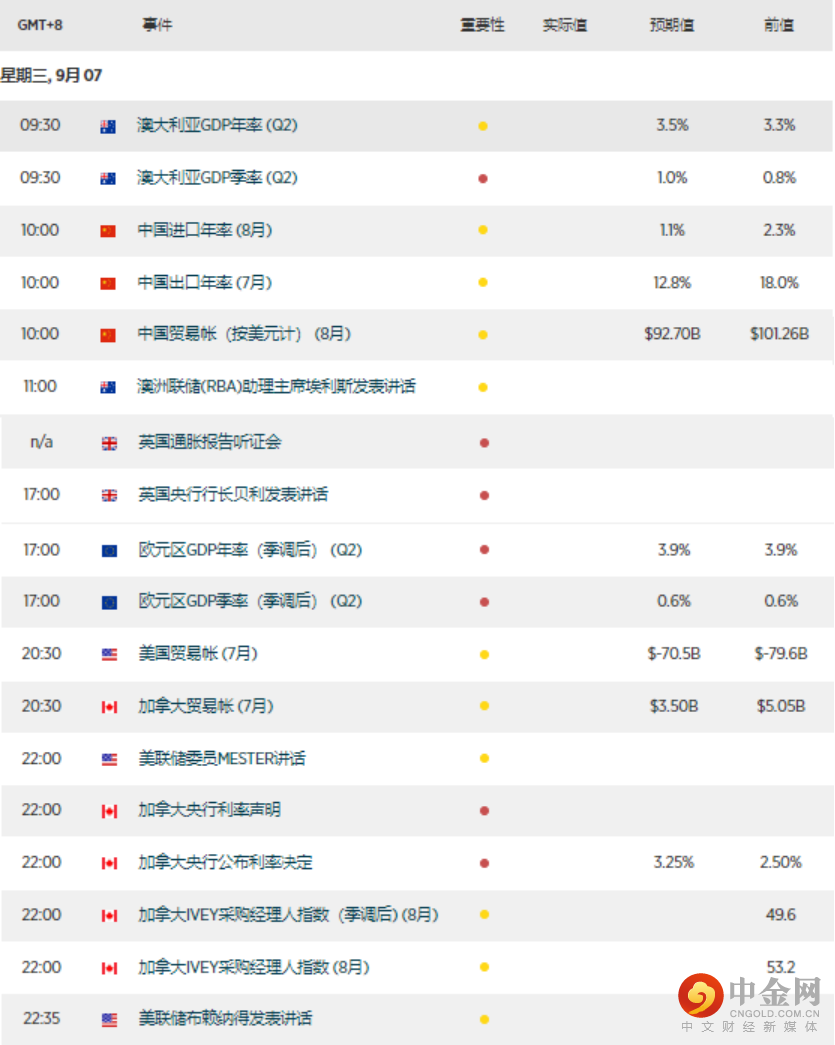 今日经济日历(标准时间+8小时)