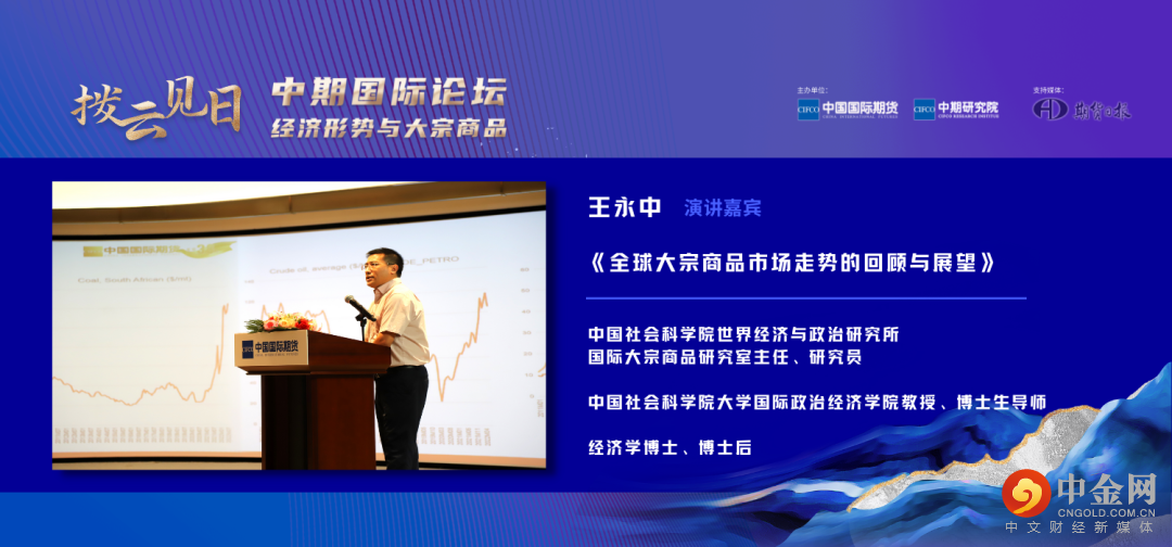 此次论坛,中国社会科学院世界经济与政治研究所国际大宗商品研究室主任、研究员,中国社会科学院大学国际政治经济学院教授、博士生导师,经济学博士、博士后王永中,以“全球大宗商品市场走势的回顾与展望”为主题进行了分享。