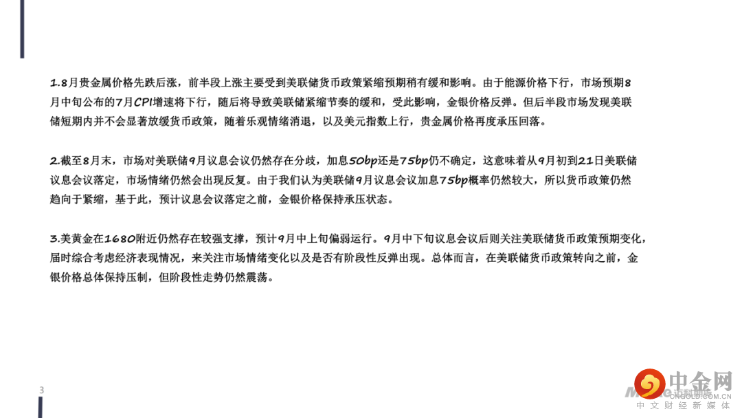 迈科贵金属月报-美联储9月议息会议之前,预计贵金属难改弱势 | 2022年09月