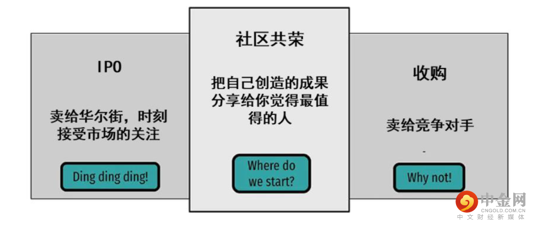 随着产品成熟、社区生态成型,最后一步就是Exit to community,其重要的一步是将Token发行、销毁等激励体系、社区治理体系写进智能合约,让社区实现真正的核心自治,而核心决策权则回归DAO。