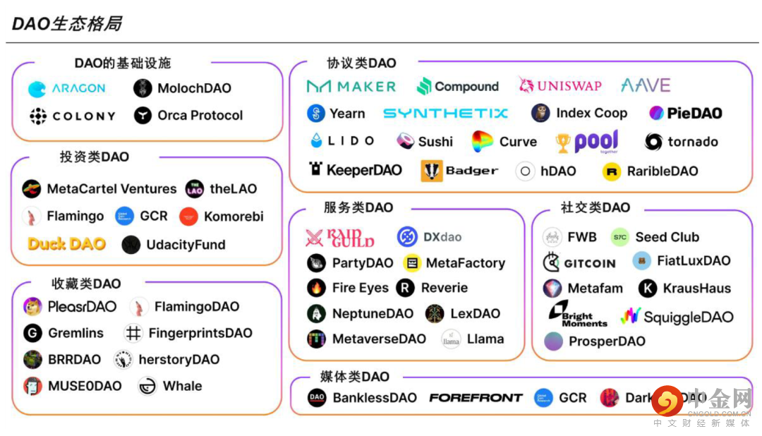 从DAO目前的整体生态来看,可以分为DAO底层基础设施、应用类DAO。