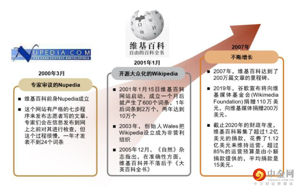 另一个类似开源软件模式的典型案例是维基百科(Wikipedia)。