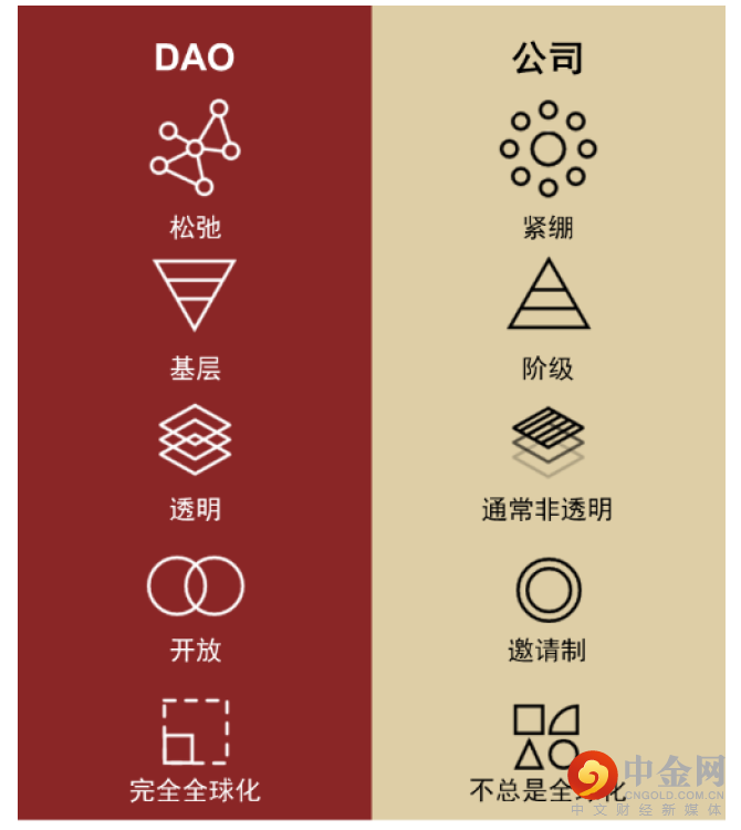 Web3.0则基于区块链技术以及目前已经建立相对成熟的去中心化金融体系(DeFi),提出一种兼具合作组织和开源生态的优点,并改善其缺点的解决方案——DAO。