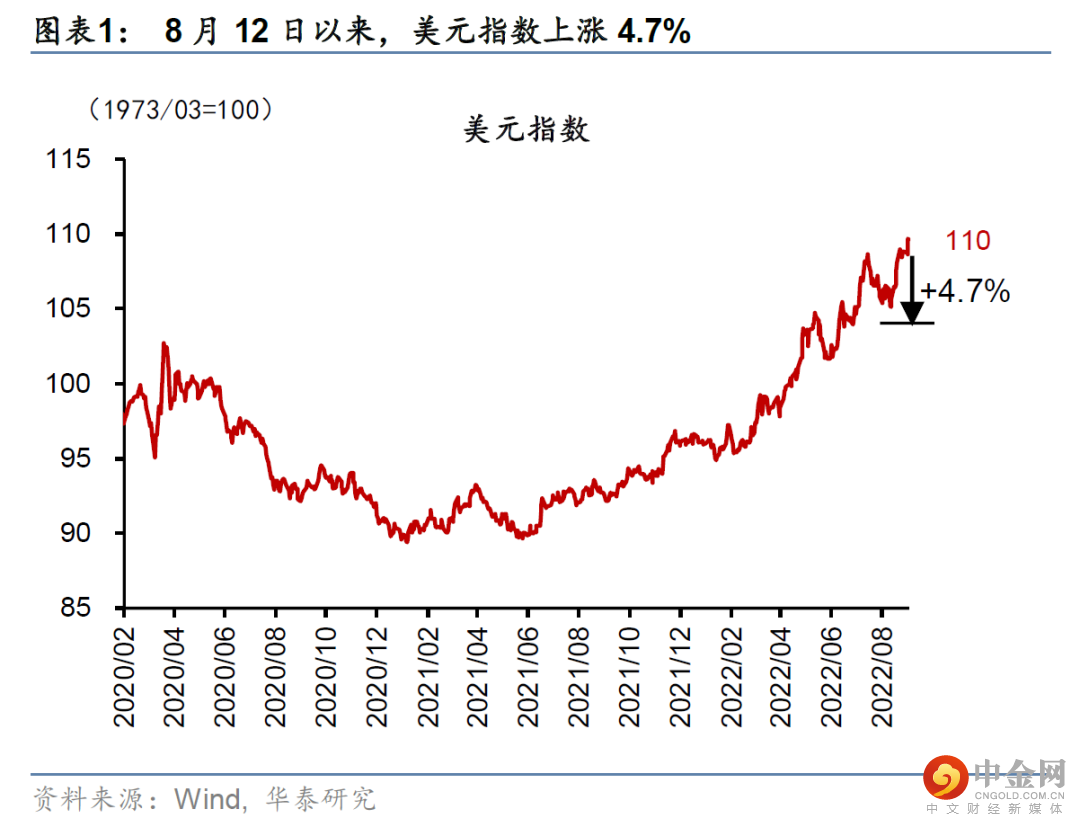 9月5日盘中,美元指数触及110,为2002年以来本轮高点。