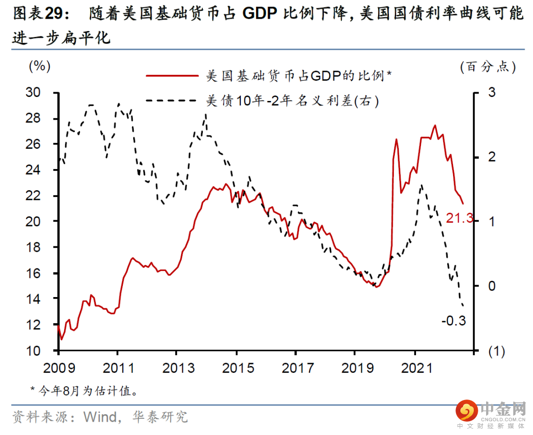 同时,财政存款下降对美国基础货币的补充也将消退,表明美国基础货币增长及其GDP占比均将加速下行。