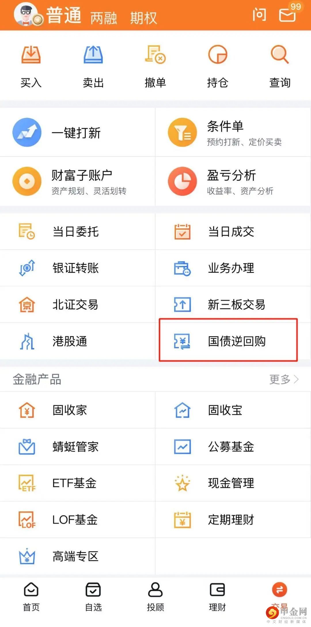 第一步:打开中信建投蜻蜓点金APP,依次点击“交易”→“国债逆回购”,进入国债逆回购首页。
