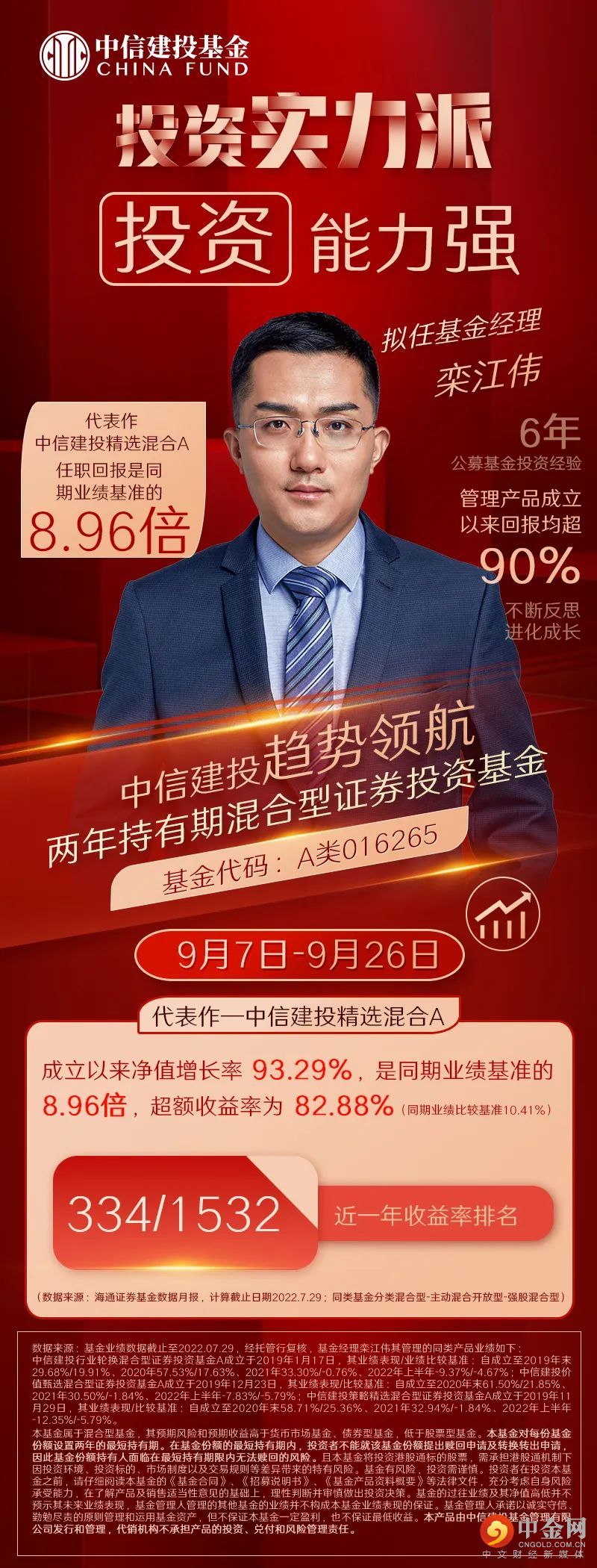 8月25日,中信建投基金发布公告,拟聘用栾江伟担任中信建投趋势领航两年持有(A类016265)基金的基金经理。