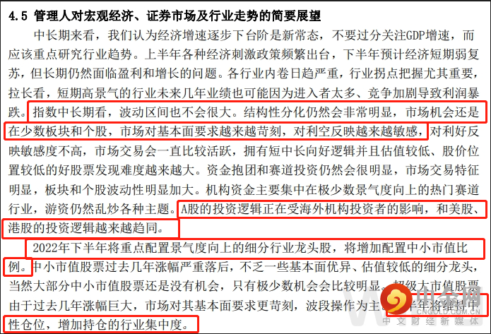 “上半年各种经济刺激政策频繁出台,下半年预计经济短期弱复苏……指数中长期看,波动区间也不会很大。结构性分化仍然非常明显,市场机会还是在少数板块和个股。”