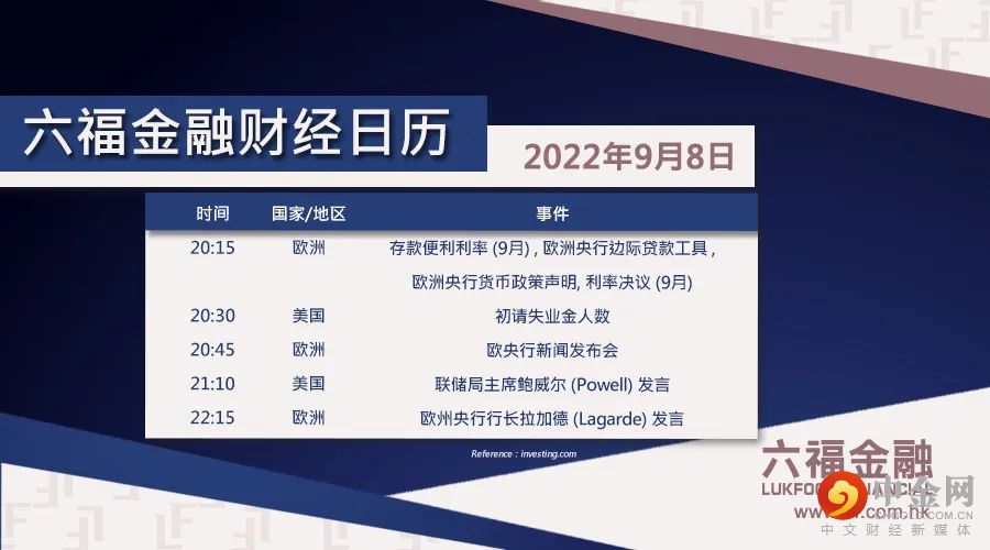 【六福金融财经日历9月8日】投资者请留意!今日将公布以下经济数据及业绩: