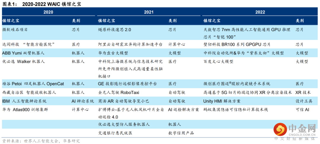 从2020-2022年WAIC镇馆之宝变迁中,我们注意到以下趋势: