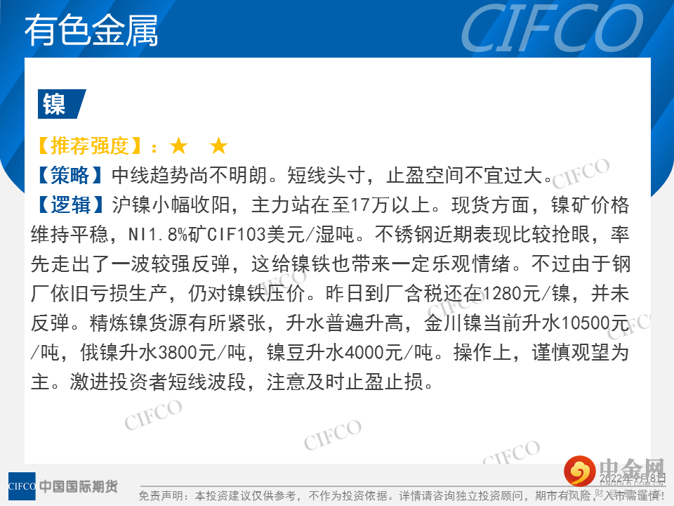 免责声明:客户不应视本报告为作出交易决策的惟一因素。本报告中所指的观点及服务可能不适合个别客户,不构成客户私人咨询建议。本公司未确保本报告充分考虑到个别客户特殊的投资目标、财务状况或需要。本公司建议客户应考虑本报告的任何意见或建议是否符合其特定状况,以及(若有必要)向取得期货交易咨询业务资格的经营机构或期货交易研究分析人员咨询。在任何情况下,本报告中的信息或所表述的意见并不构成对任何人的交易建议。在任何情况下,本公司不对任何人因使用本报告中的任何内容所引致的任何损失负任何责任。若本报告的接收人非本公司的客户,应在基于本报告作出任何交易决定或就本报告要求任何解释前向取得期货交易咨询业务资格的经营机构或期货交易研究分析人员咨询。