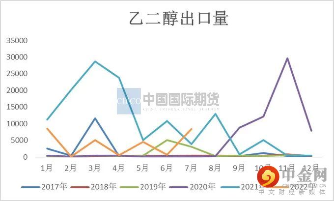 7月份乙二醇出口量为0.84万吨,环比增加1085.99%,同比增加120.09%,出口均价为677.93元/吨。