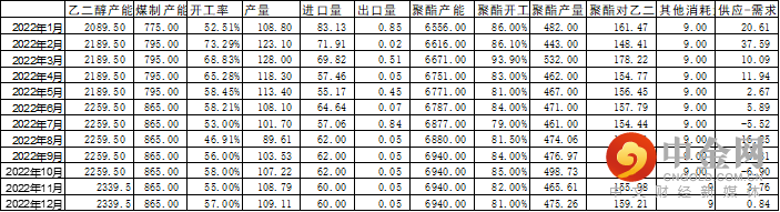 表4-1:2022年EG供需平衡表 (万吨)