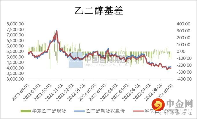 由于乙二醇整体供需格局明显过剩,市场内可流转现货充裕,现货基差保持偏弱运行。