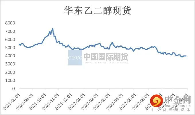 8月乙二醇市场价格回落明显。原油端成本支撑减弱,供应端多套乙二醇装置检修,国内乙二醇供应量明显收缩。受高温天气影响,太仓、常熟、湖州、萧绍等局部地区实行限电政策,导致下游聚酯开工负荷及终端织机开机率均处于数年同期内的低位,聚酯产销整体偏弱;多重利空因素共同作用下乙二醇价格下行明显。8月乙二醇华东现货市场月均价4055元/吨,较7月下跌5.3%。月内最低价格为3845元/吨,最高价格为4395 元/吨。