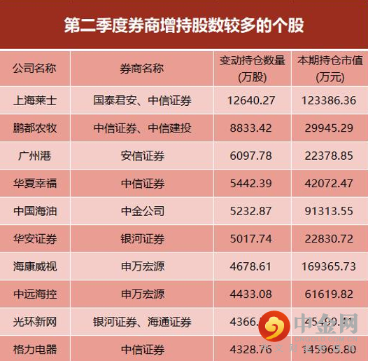 随着财报季的结束,证券公司二季度的重仓个股内容浮出水面。众所周知,券商持仓历来是资本市场散户投资者的重要参考指标备受市场关注。