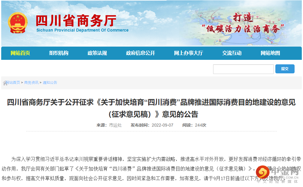 《关于加快培育“四川消费”品牌推进国际消费目的地建设的意见》(来源:四川省商务厅官网、金元证券制图)