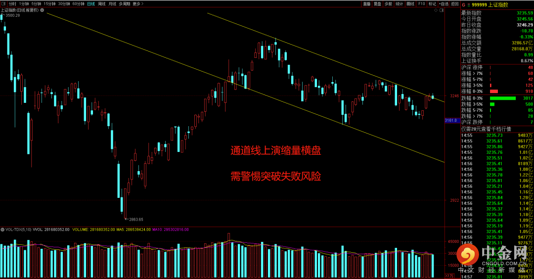 围绕着通道线突破位置的争夺依然是沪指主旋律,前天一涨,昨日一跌,其实都没有明确出现突破还是跌破的确认信号,但需要警惕的是,市场如果在这个位置上出现较长的犹豫徘徊,容易出现多头力量衰竭进而出现回调风险,紧密跟进后续市场在这个点位上的成交量情况。