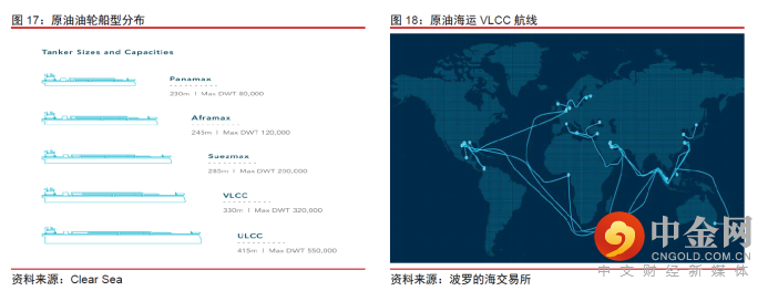 根据波罗的海交易所数据,全球的原油海运航线涉及19条,相对于集运航线更为集中。受到石油产量及主要消费国进口量影响,全球原油主要流向分别为:中东à远东、中东à北美/欧洲、西非à远东、美洲à远东。其中主要航线(VLCC航线)有:TD1(中东-北美)、TD3C(中东-中国)、TD15(西非-中国)、TD22(北美-中国)、TD2(中东-新加坡)。未来如果欧洲全面禁止进口俄罗斯石油进入实施阶段,原油贸易路线有望增加。