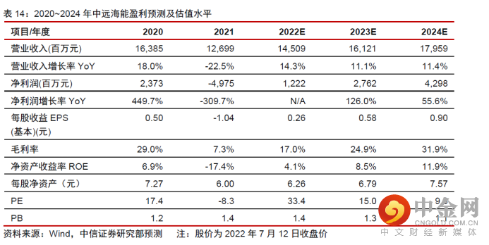 2)内贸油运:内贸油运业务长期保持稳定盈利,预计22-24 年贡献毛利14/15/15.3 亿元。