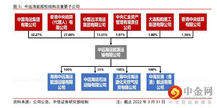 公司控股股东为中海集团,实际控制人为国资委。公司控股股东中海集团持有公司32.2%的股份,股东中国远洋海运集团直接持有公司13%股份,集团下设有中远海运集运等业务主体,公司也能够依托中远海运集团强大的资源背景与品牌优势,实施船舶燃油精益化的集中采购策略;国资委通过持有90%中远海运集团股份进而控制公司。