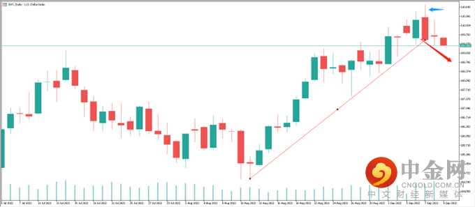 汇市方面,美元指数(DXY)继续回落,符合本刊在周四发表的《AETOS每日汇评》中的预测:“值得注意的是,虽然K线仍在上行趋势线上方,但是日线级别的最后一根蜡烛也出现了有趣的变化——蜡烛本体高于前三根(前三个交易日),而蜡烛上方的上影线也几乎达到了本体75%的长度,是买方在交易日内出现疲惫乏力的信号。”