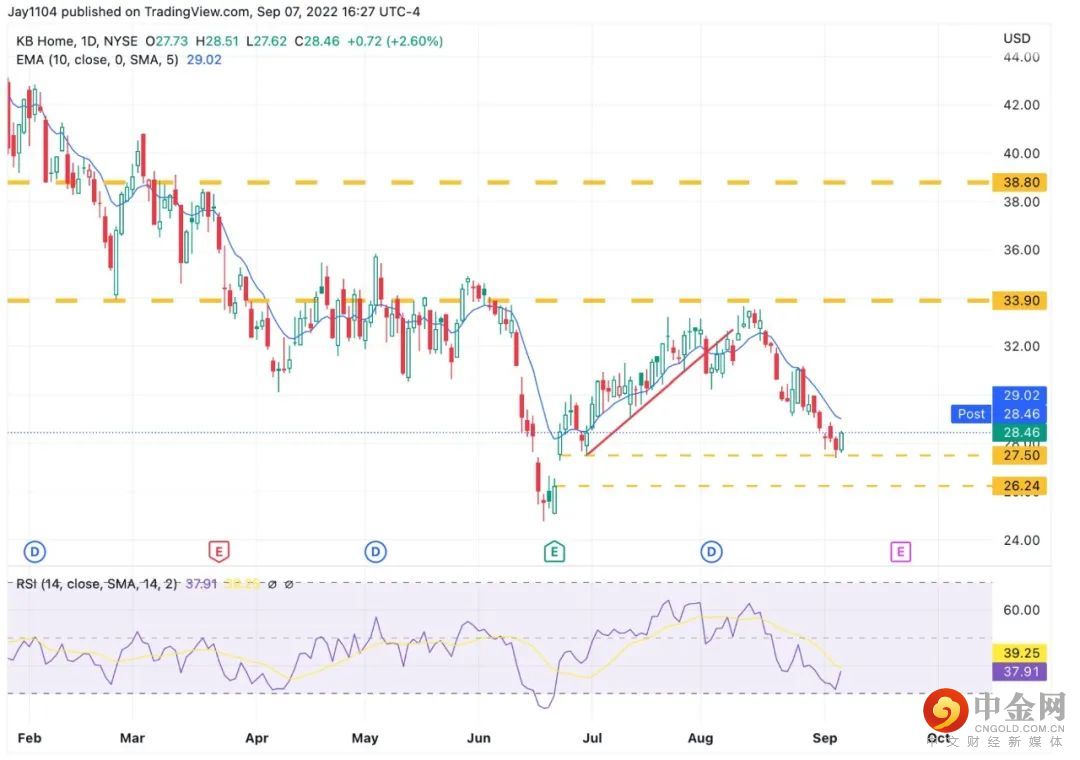 美国房地产开发商KB Home公司的图表与台积电的图表走势看起来很相似。