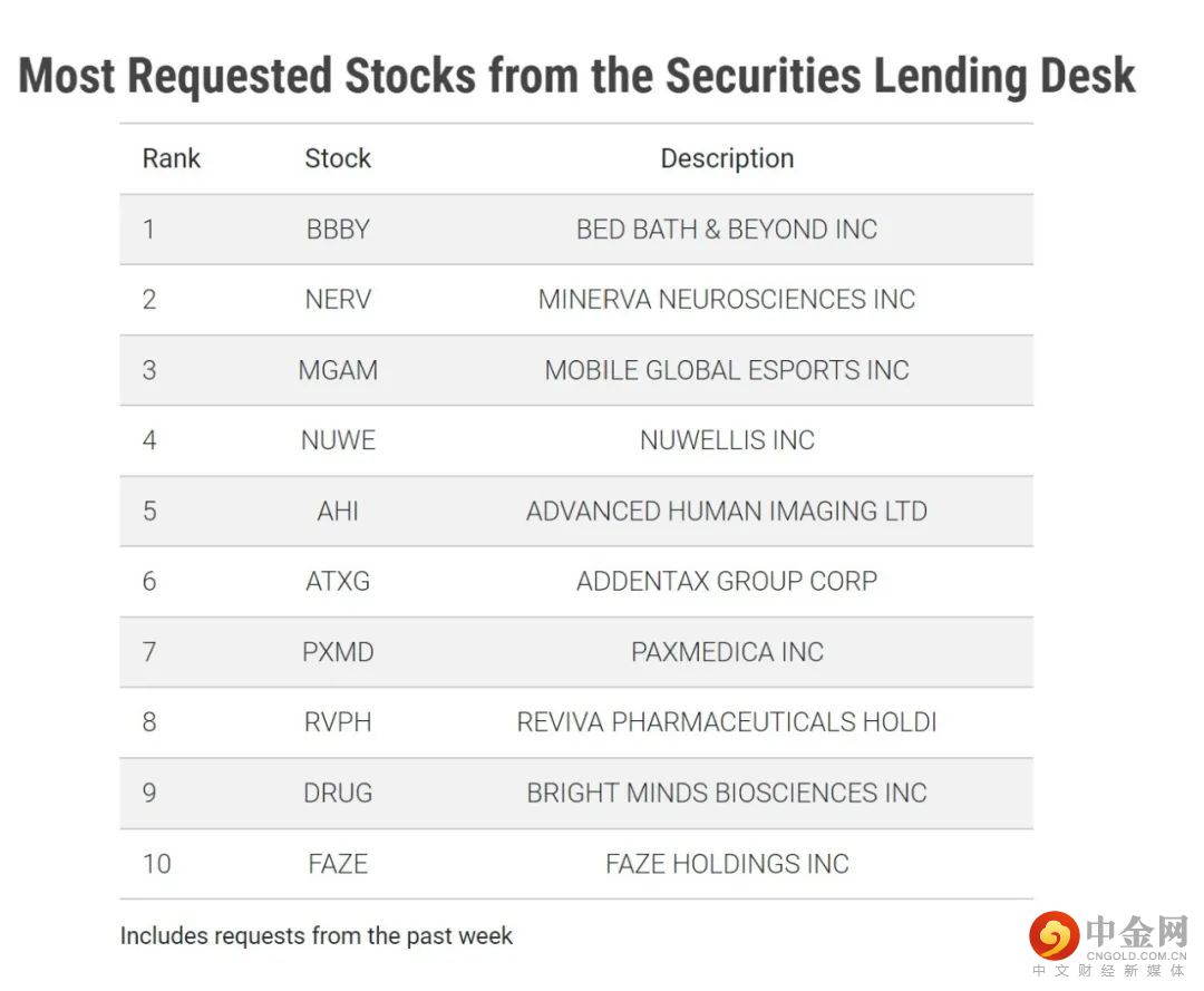 下表中列出的是2022/9/1借入需求最高的10个证券。