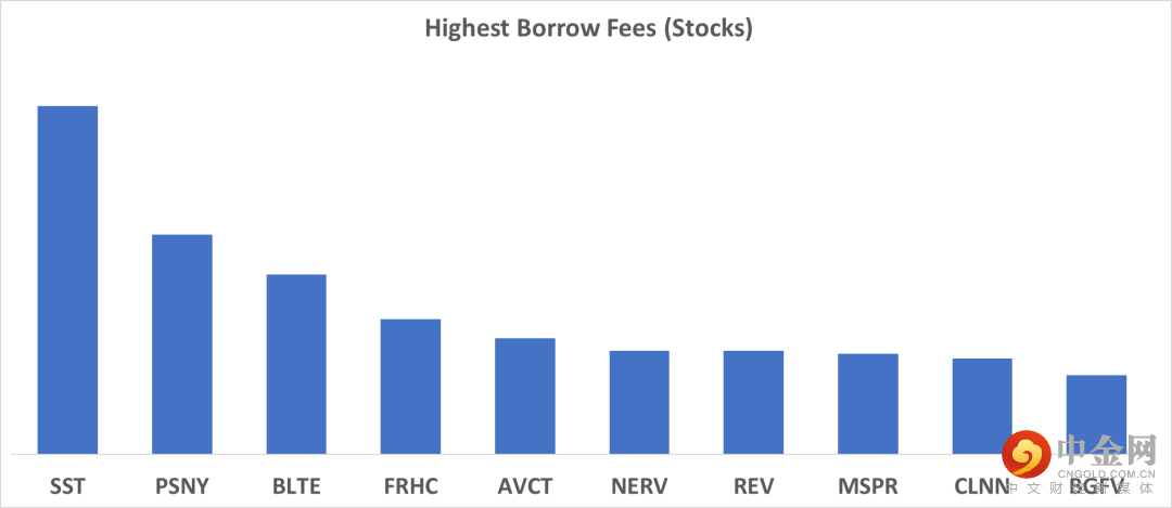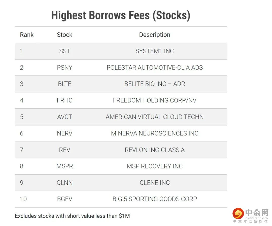 下表中列出的是2022/9/1具有最高借入费用的10个证券。