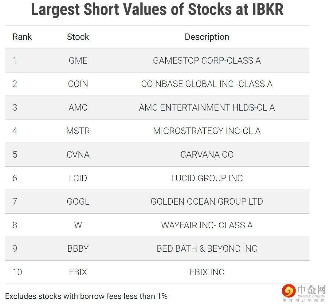 下表中列出的是2022/9/1具有最大做空值的10个证券