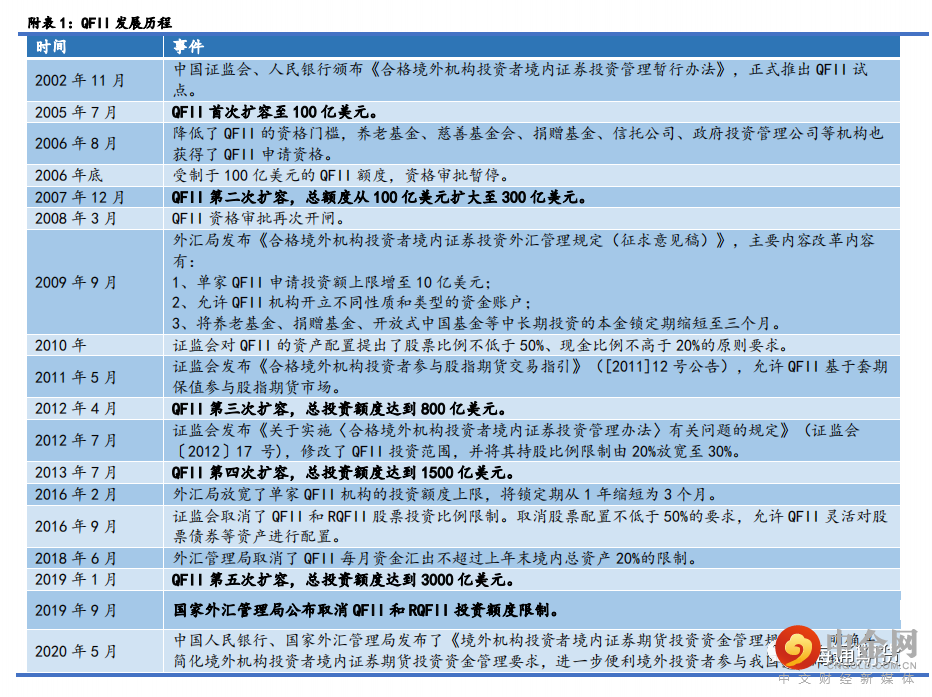 整体上来看 QFII 简化便利政策有两层含义,一是中国金融资本市场逐步开放的速度会加快,