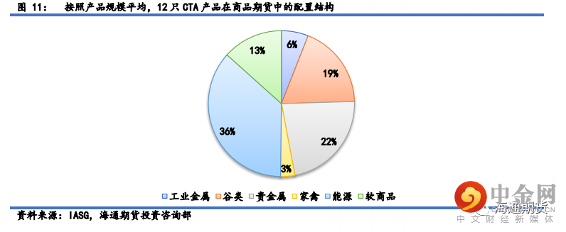 按照产品规模平均,12 只 CTA 产品在商品期货有关的持仓中,能源占比 36%;贵金属占比