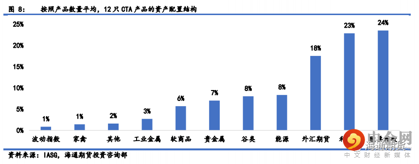 置的偏好及特点,我们选取国际咨询机构 IASG 上海外头部 CTA 策略产品的相关数据进行分析。