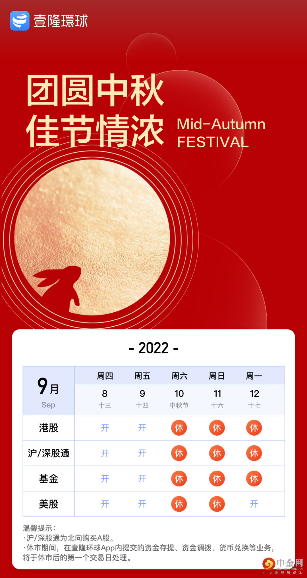 温馨提示|中秋节休市安排