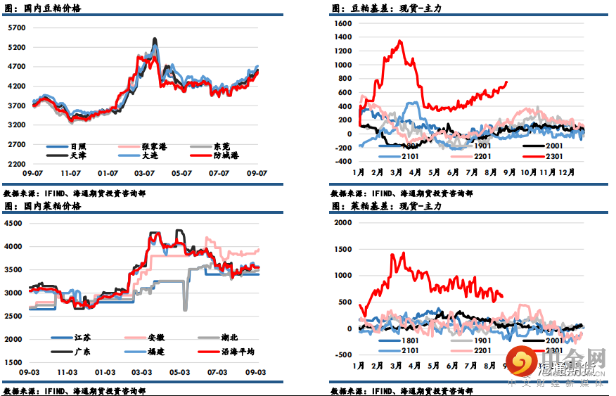 豆粕主力收盘3840元,上涨7元,涨幅0.18%,菜粕主力报收2953元,上涨14元,涨幅0.48%。沿海区域油厂主流报价在4560-4650元/吨,广东4650元/吨涨90元/吨,江苏4560元/吨涨30元/吨,山东4580元/吨涨20元/吨,天津4650元/吨涨80元/吨。美豆期价短暂反弹后再度回落,期价创三周新低。豆粕在现货高基差的支持下明显抗跌。短期美豆天气炒作窗口即将关闭,当前USDA预计美豆优良率为57%,与前一周相同,高于市场预期56%,由于丰产预期落地前整体平衡表仍偏紧,预估后期期价下跌不会很顺畅。国内原材料供应受累于前期较差的进口利润,预计9月-10月进口大豆到港差,预计压榨维持高位,国内进口大豆有进一步去库存趋势,水产养殖旺季叠加临近双节,下游补库情绪良好,豆粕提货速度加快,豆粕去库存的背景下预计现货价格仍有支撑,基差价格或维持坚挺。