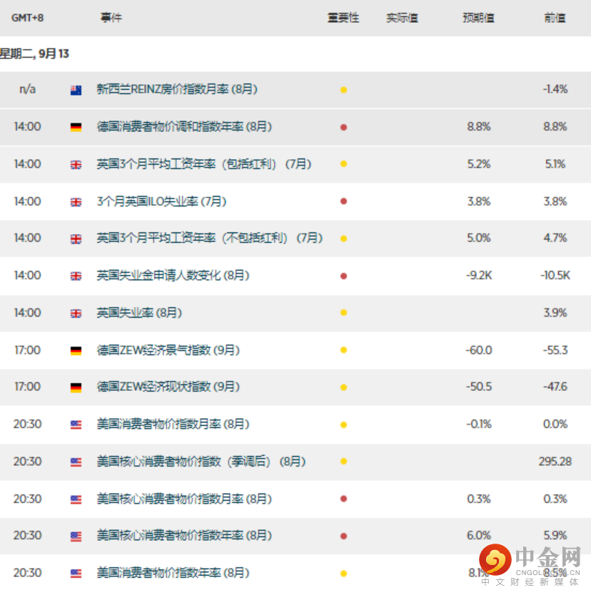 8月CPI年率预计从8.5%下降至8%,月率下降0.1%。但核心CPI年率预计从5.9%上升至6.0%。