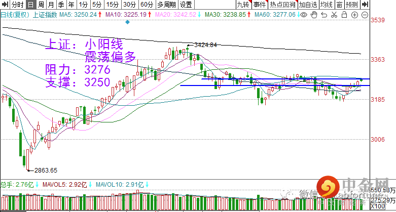 A股开盘三大指数全部高开,沪指高开0.31 %,深成指高开0.49%,创指高开0.73%,开盘后指数震荡,农业,大豆,贵金属开盘迅速拉升,随后种植业,啤酒,猪肉,酒店餐饮等板块持续上涨,CRO, 医疗,房地产,电力,煤炭等板块大幅下跌,临近午盘汽车板块冲高,午后指数震荡回调,大飞机,航空发动机,零售等少数板块冲高。收盘沪指涨0.05%,深成指涨0.38%,创指涨0.09%。两市个股涨跌各半,涨停个股66家,跌停个股10家。上周五沪指收中阳线,创指收小阳线,短线震荡偏多。今日指数高开震荡,农业,种植业和贵金属等板块领涨,CRO,地产和煤炭等板块下跌。指数冲高回落,煤炭和电力,新能源回调,整体多头情绪一般,短线强势股情绪较弱。沪指和创指收小阳线。操作上注意板块轮动,关注低位板块。