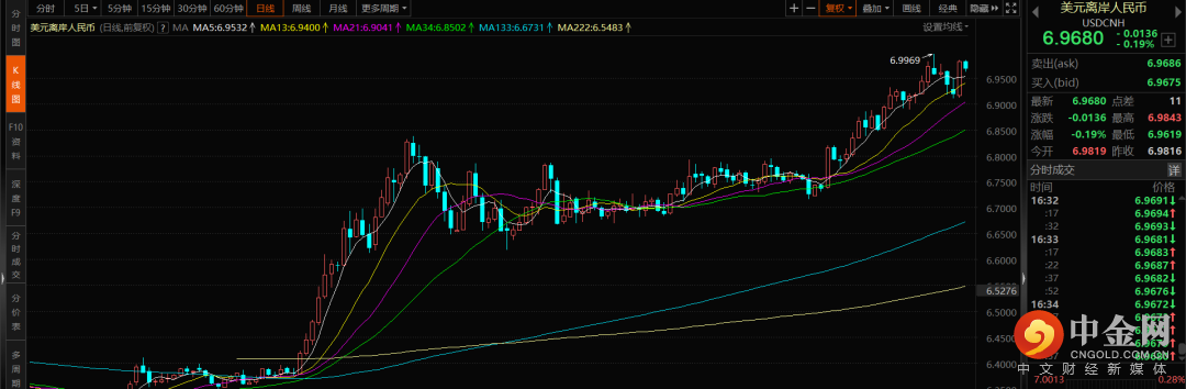从量能来看,市场成交更加低迷,从前日的7700亿水平再度缩减到7200亿左右。另一方面,汇率7的关口支撑抵挡了数日,但在美国通胀超预期的背景下再次快速接近7元,北上资金结束连续净买入,全天净卖出14亿。
