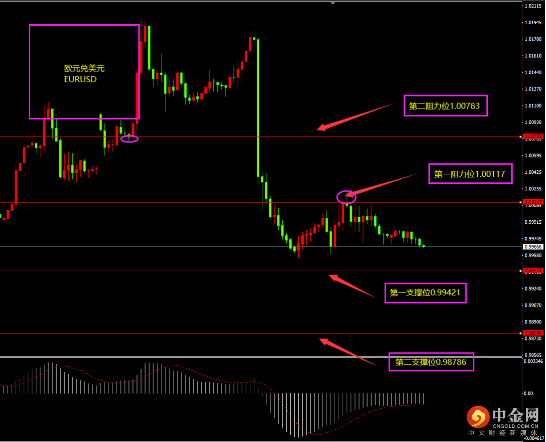 天图欧元收小阳线,价格小幅冲高,但实体部分较小,多头不强,短期上影线较长,且MACD位于0轴之下,空头力度仍在,日内更多以震荡以及震荡下行为主?小时图欧元期间底部虽有部分阳线上涨,但幅度较小,多头不强,短期MACD位于0轴之下,空头占优,日内更多以逢高看空为主?(大阳线不出,多单不入)