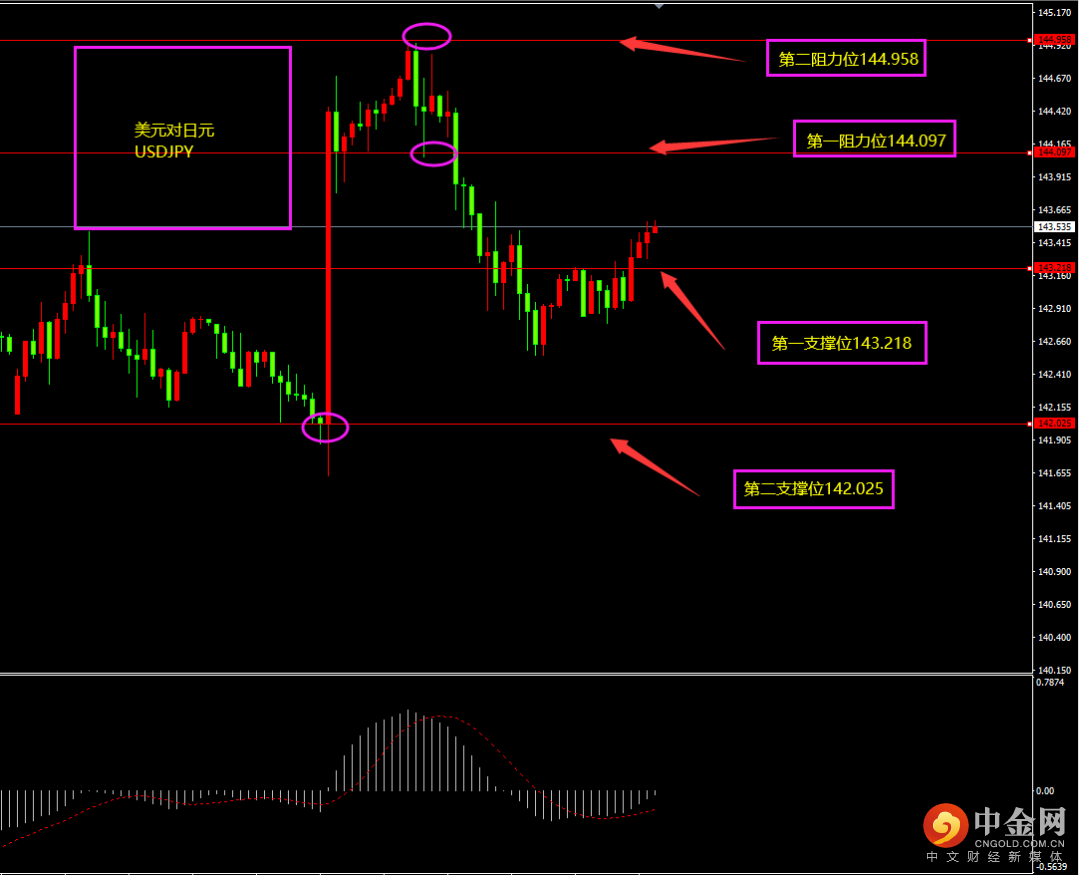 天图美日收大阴线,价格大幅回落,空头一度大幅释放,短期MACD仍位于0轴之上,多头仍在,短期或进入调整阶段,日内更多以逢低看多为主。小时图美日期间一度连续阴线回落,看似空头增强,但底部有连续阳线冲高,且MACD逐渐上移,空头减弱,短期面临多头获利了结形成的价位冲高,日内更多以逢低看多为主?