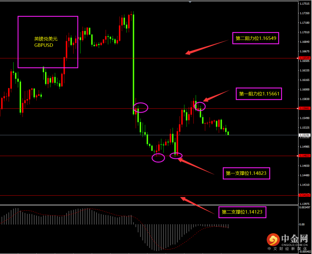 天图英镑收小阳线,价格小幅冲高,但实体部分较小,多头不强,短期上影线较长,且MACD位于0轴之下,空头力度仍在,日内更多以震荡以及震荡下行为主?小时图英镑上行力度放缓,多头有所减弱,短期连续阴线下滑,且MACD位于0轴之下,空头占优,日内更多以逢高看空为主?(大阳线不出,多单不入)