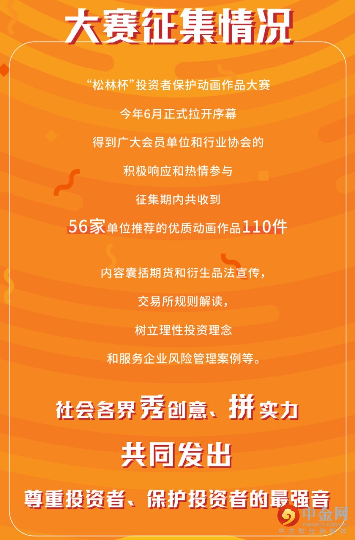 “松林杯”投资者保护动画作品大赛自今年6月拉开序幕后,得到广大会员单位和行业协会的积极响应和热情参与,征集期内共收到56家单位推荐的优质动画作品110件,内容囊括期货和衍生品法宣传,交易所规则解读,树立理性投资理念和服务企业风险管理案例等。