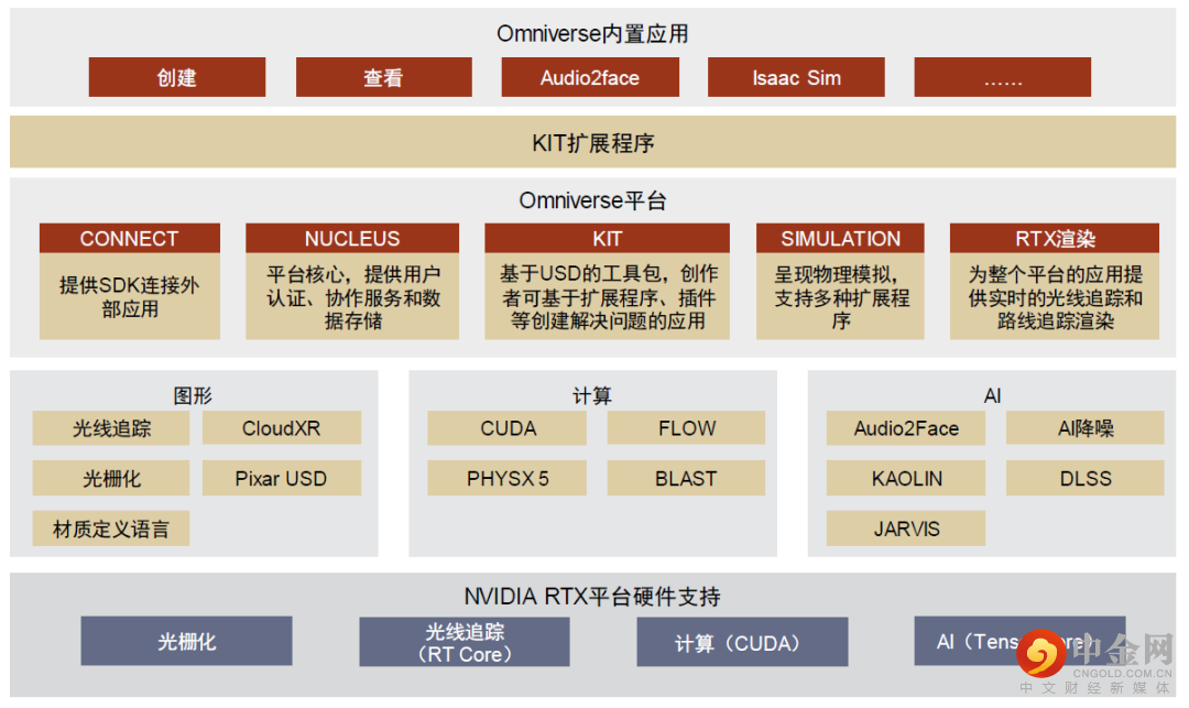 图表:Omniverse平台架构及硬件支持